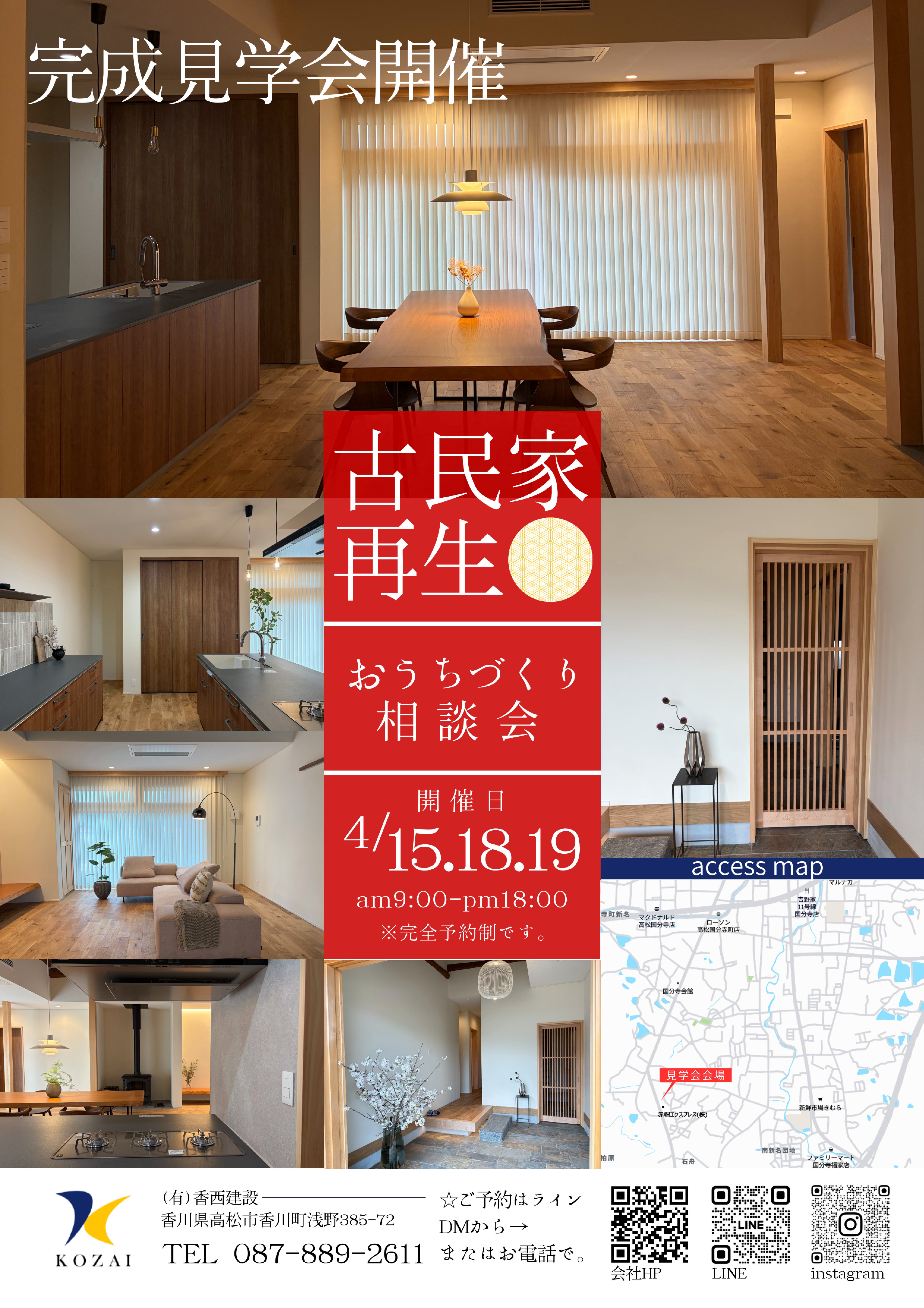 ・インスタグラムDM: 香西建設Instagram(@kozai.kensetsu)