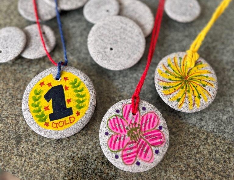 庵治石に自由にペイントをして、自分だけのメダルをつくろう