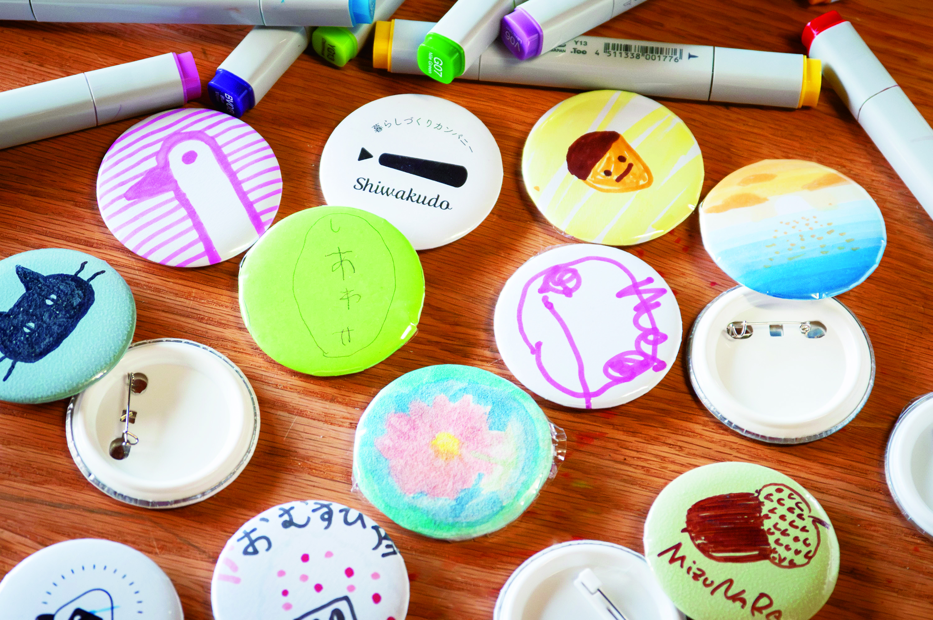 完成した缶バッチは、カバンにつけたり、お友だちや家族へのプレゼントにもぴったり。