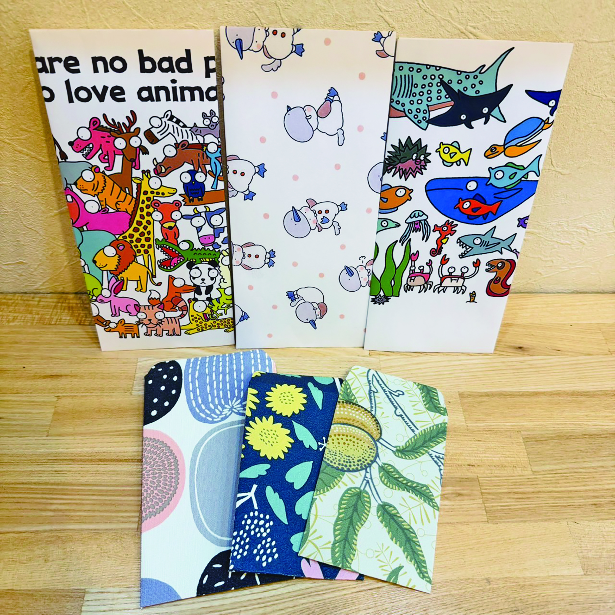 壁紙を使って大小の封筒を作ります。香川県アーティスト(ミズカ、Taichi&Shotaデザインの壁紙も初登場)