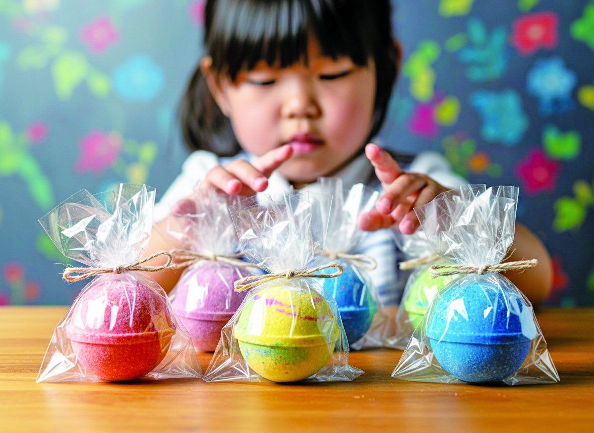 おそうじにも使える重曹とクエン酸。まぜるとシュワシュワ泡のバスボムに! 袋に入れてぎゅっと固めるだけなので、小さなお子さまでも楽しく体験できます