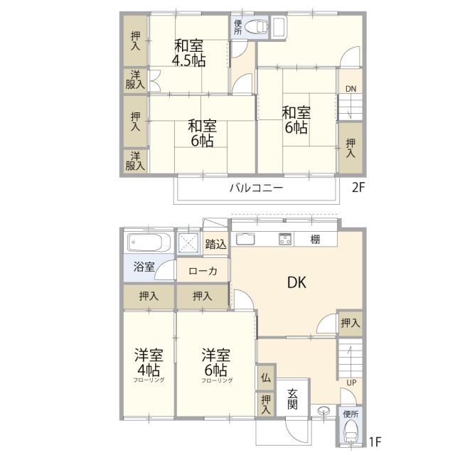 履歴 - 1982年5月 1階洋室4帖、浴室スペース部分 2階トイレ、和室4.5帖、和室6帖部分を増築。他たたみ→フローリングへ変更。キッチン、トイレ、ユニットバス等時期不明ですが交換しております。 ※実施年月は最も古い履歴を表示