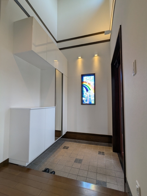 一部ペアガラス仕様に(玄関周りはステンドグラスで心が和みます)
