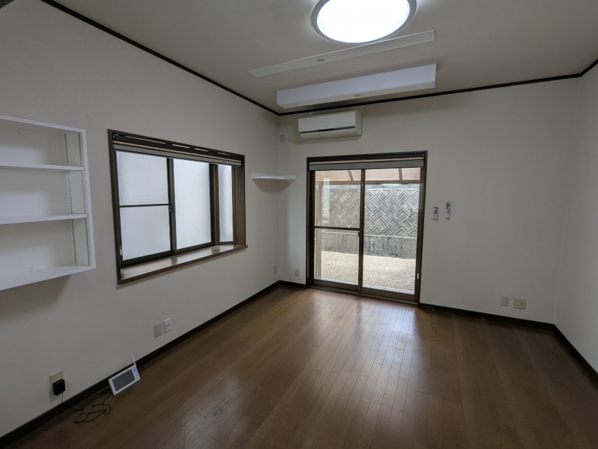 - 全居室収納、太陽光発電システム、全居室エアコン、床下収納、モニター付インターホン、カードキー、ディンプルキー、ダブルロックドア、浄化槽、省エネ給湯器、出窓、室内物干し、上水道、電気、庭、ダウンライト、照明器具、掘ごたつ、複層ガラス